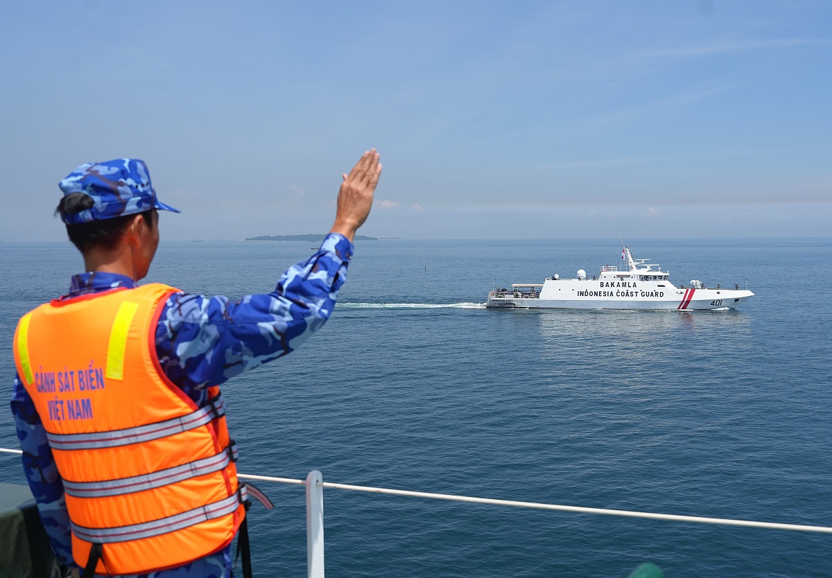 Ngày 29/8, sau khi rời cảng thành phố Jakarta, tàu CSB 8001 của Cảnh sát biển Việt Nam và tàu KN Bintang Laut 401 của Cảnh sát biển Indonesia đã phối hợp luyện tập di chuyển theo đội hình và trao đổi thông tin trên biển. Đây là một nội dung quan trọng trong chuyến thăm, giao lưu và chia sẻ kinh nghiệm của đoàn công tác Cảnh sát biển Việt Nam tại Indonesia lần này.