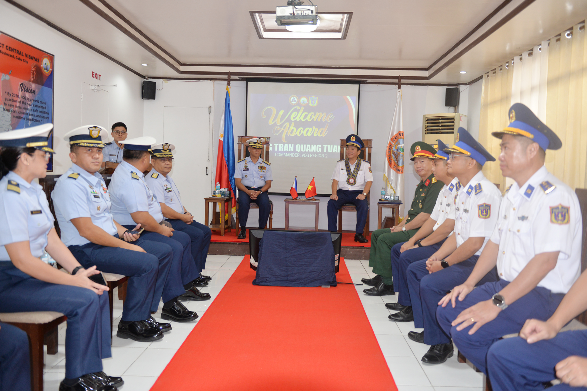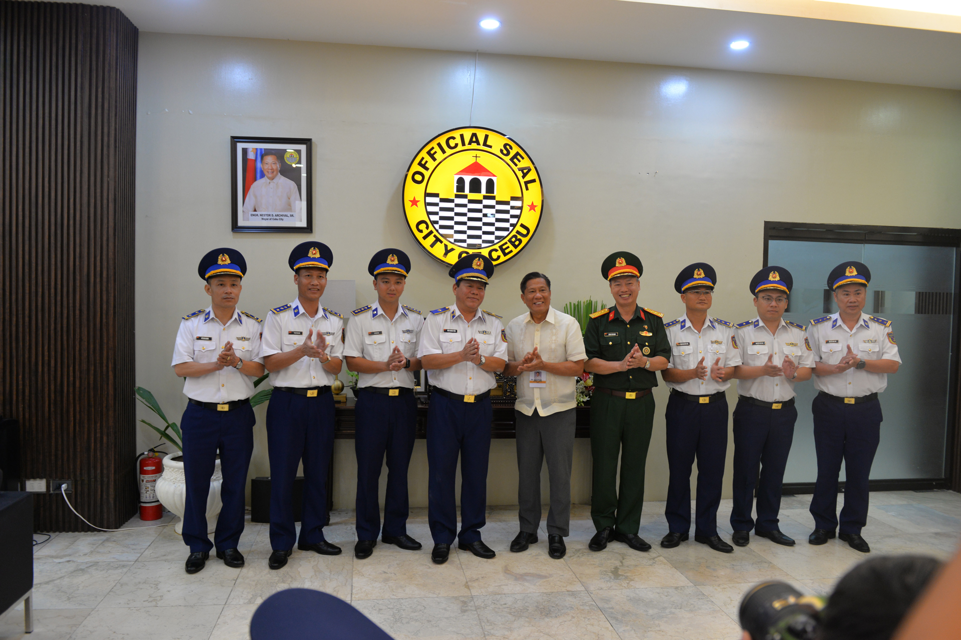 Tiếp tục chuyến thăm và giao lưu của tàu CSB 8002 tại Philippines, chiều 6/10, đoàn công tác Cảnh sát biển Việt Nam do Thiếu tướng Trần Quang Tuấn - Tư lệnh Vùng Cảnh sát biển 2/Cảnh sát biển Việt Nam làm trưởng đoàn đã đến chào xã giao chính quyền thành phố Cebu và Khu vực Trung tâm Vi-sai-át, Lực lượng bảo vệ bờ biển Philippines.