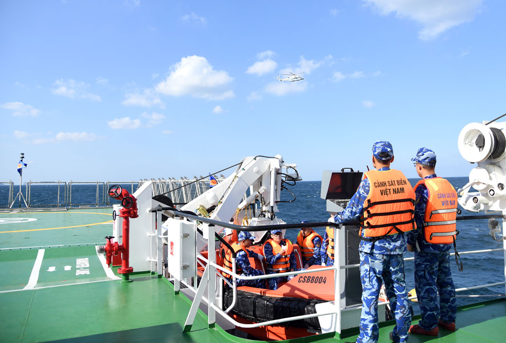 Tình huống giả định đặt ra: tàu CSB 8004 của Cảnh sát biển Việt Nam đang hành trình trên vùng biển quốc tế, lân cận vùng biển phụ trách của Vùng 7/Lực lượng Bảo vệ bờ biển Nhật Bản. Trong quá trình này, Trung tâm điều hành Vùng 7 thông báo cho Trung tâm phối hợp tìm kiếm cứu nạn Việt Nam (RCC) về việc có hai người gặp nạn, trôi dạt trên biển, gần khu vực di chuyển của tàu CSB 8004. Ngay sau khi tiếp nhận thông tin, RCC yêu cầu tàu CSB 8004 khẩn trương phối hợp với Lực lượng Vùng 7 triển khai tìm kiếm, cứu hộ cứu nạn.