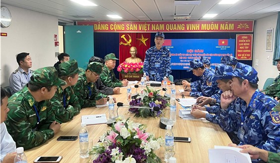 Chỉ huy Hải đoàn 11/Bộ Tư lệnh Vùng Cảnh sát biển 1 phổ biến các nội dung tuần tra liên hợp tới các thành viên đoàn công tác.