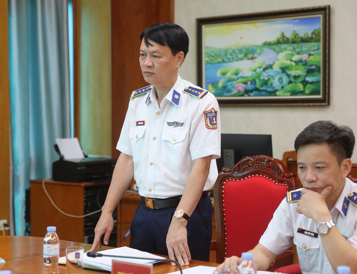 Đại tá Lương Đình Hưng - Cục trưởng Cục Nghiệp vụ và pháp luật Cảnh sát biển Việt Nam, Trưởng đoàn công tác phát biểu nhận nhiệm vụ.