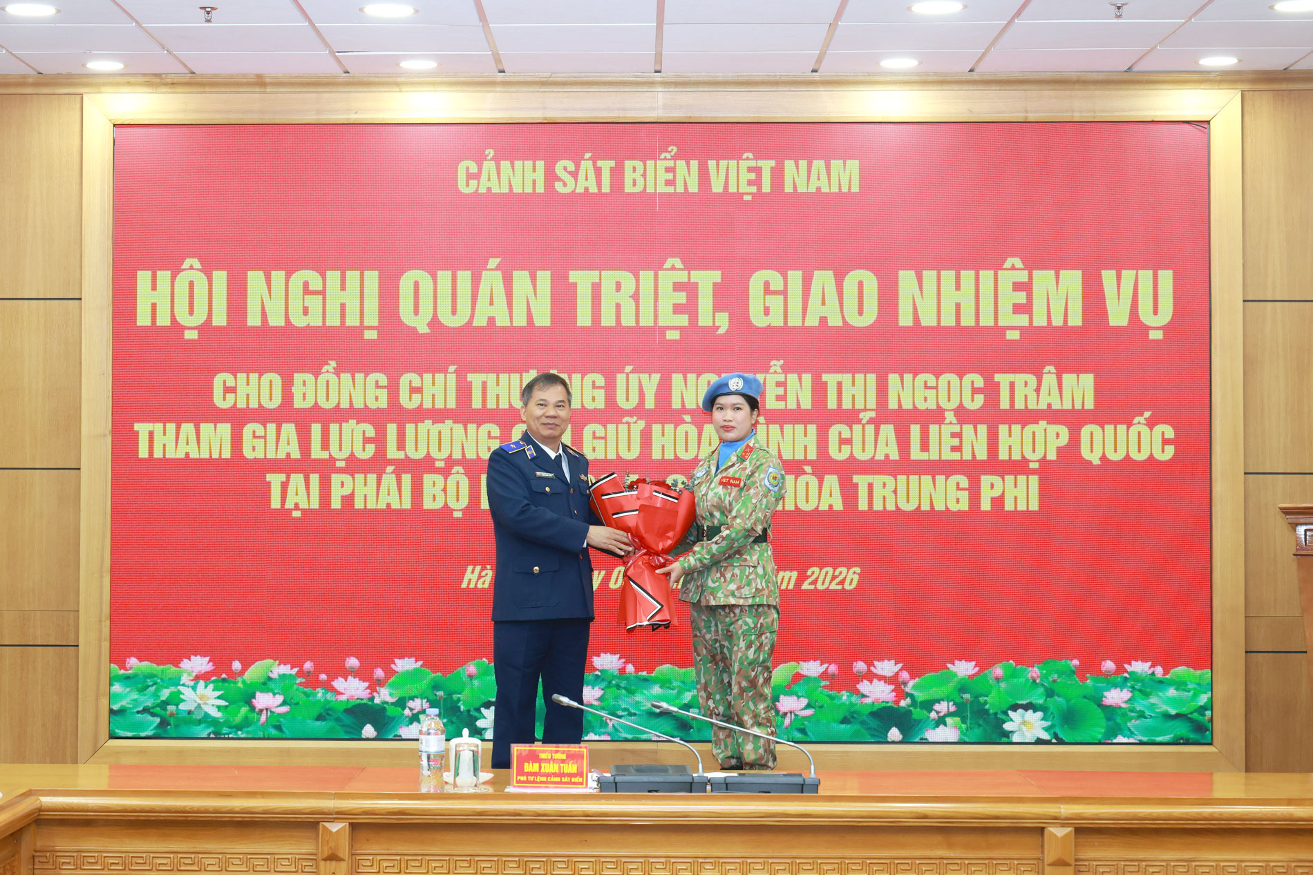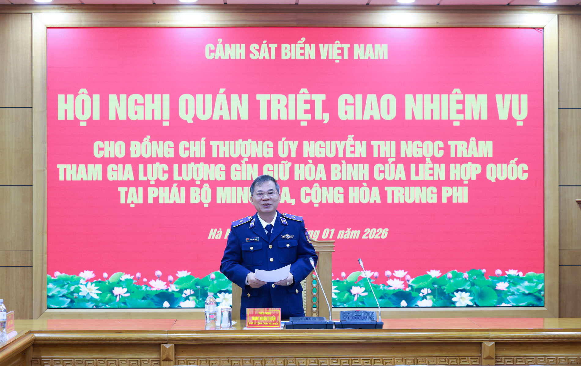 Ngày 8/1, Cảnh sát biển Việt Nam tổ chức Hội nghị quán triệt, giao nhiệm vụ cho Thượng úy Nguyễn Thị Ngọc Trâm tham gia lực lượng Gìn giữ hòa bình của Liên hợp quốc tại Phái bộ MINUSCA, Cộng hòa Trung Phi.