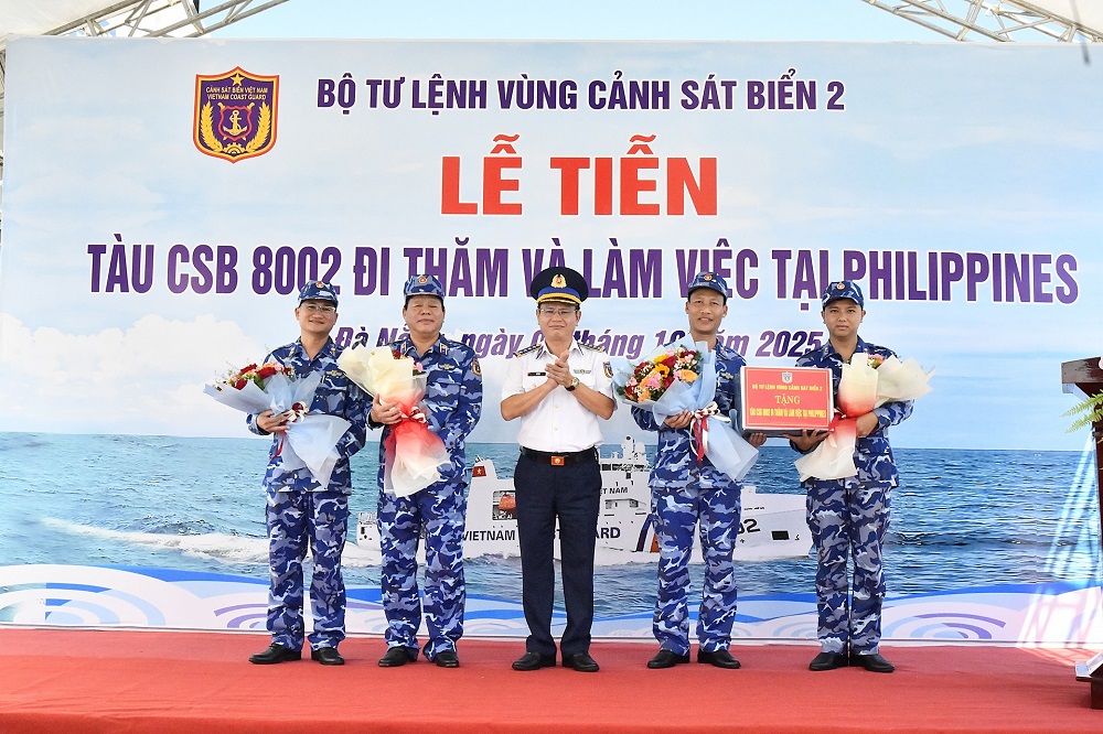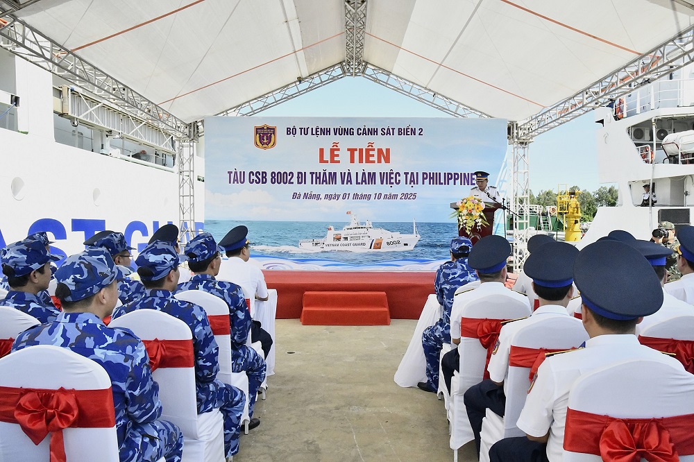Chiều 01/10, tại quân cảng Bộ Tư lệnh Vùng Cảnh sát biển 2 (xã Núi Thành, thành phố Đà Nẵng), Tàu CSB 8002 thuộc Hải đoàn 21/Bộ Tư lệnh Vùng Cảnh sát biển 2 xuất phát đi thăm và việc với Lực lượng Bảo vệ bờ biển Philippines.
