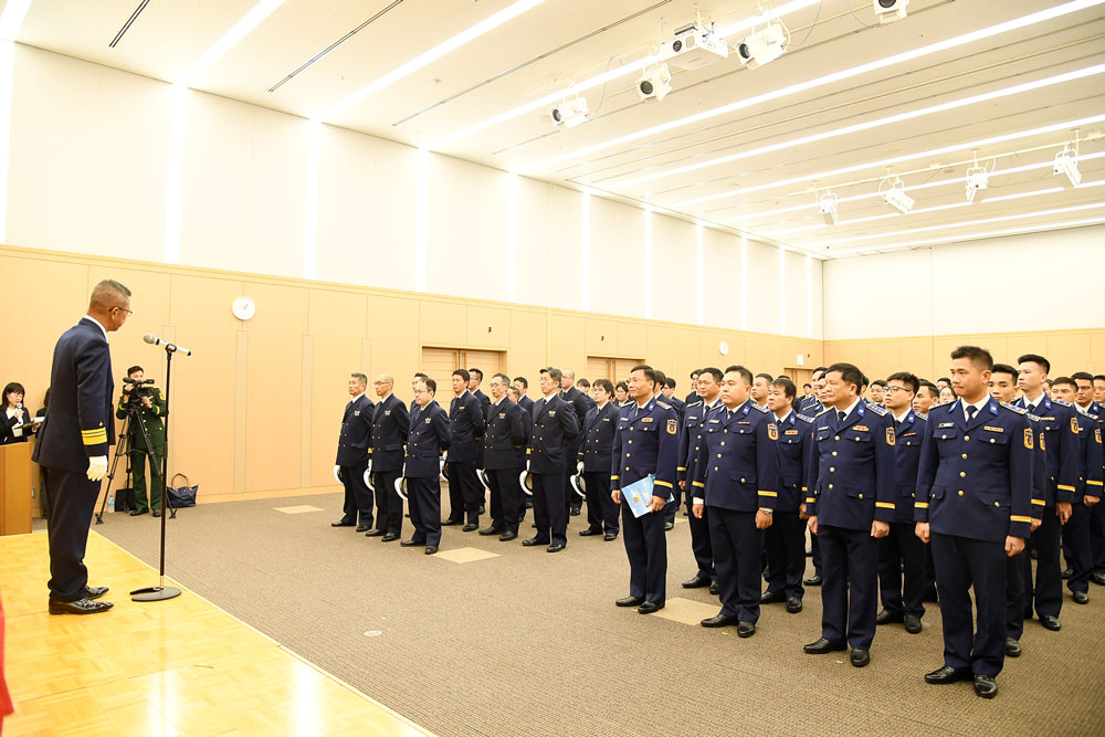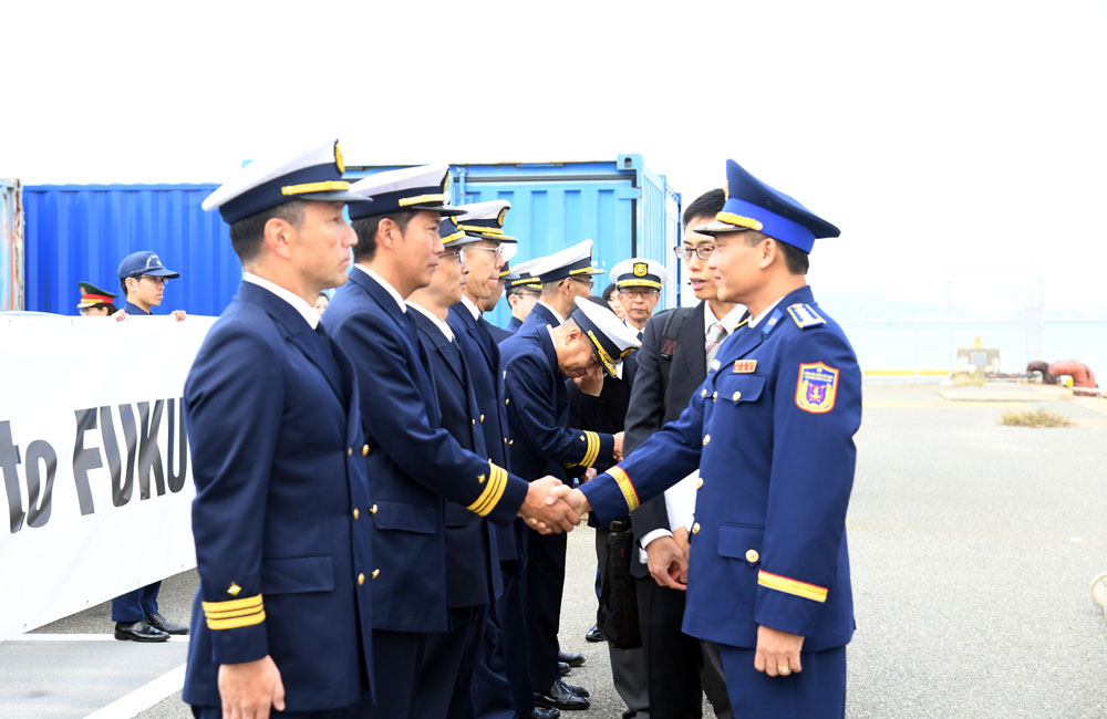 Ngài Fukumoto Takuya - Tư lệnh Vùng 7, Lực lượng Bảo vệ bờ biển Nhật Bản chủ trì lễ đón tàu. Cùng dự có Đại tá Nguyễn Thái Sơn - Tùy viên Quốc phòng Việt Nam tại Nhật Bản; Ngài Kato Hiroki - Ủy viên Hội hữu nghị Sakai Nhật - Việt cùng đông đảo cán bộ, nhân viên Lực lượng Bảo vệ bờ biển Nhật Bản.