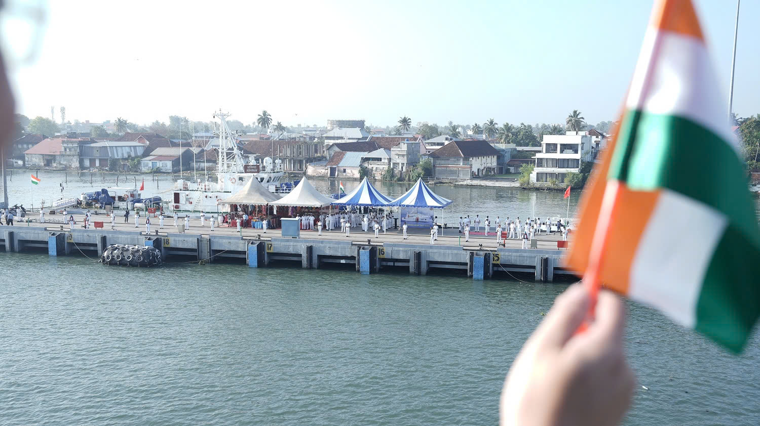 Lễ đón đoàn công tác Cảnh sát biển Việt Nam tại cảng thành phố Kochi diễn ra theo nghi thức trang trọng của Lực lượng Bảo vệ bờ biển Ấn Độ.