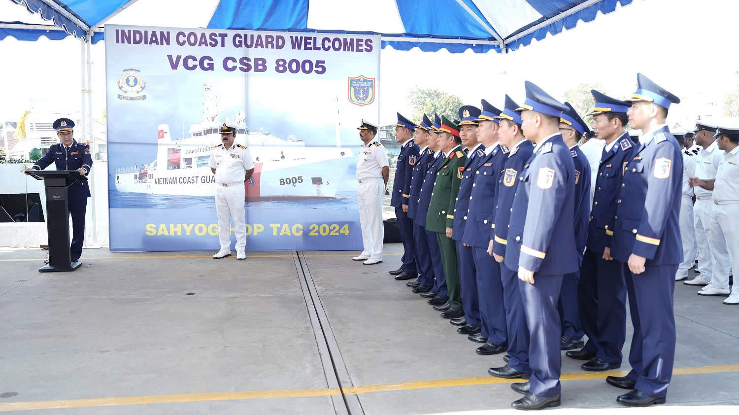 Thay mặt đoàn công tác Cảnh sát biển Việt Nam, Đại tá Nguyễn Minh Khánh bày tỏ sự vui mừng và vinh dự khi được đến thăm, giao lưu với Lực lượng Bảo vệ bờ biển Ấn Độ. Đồng chí trưởng đoàn nhấn mạnh, đây là cơ hội quý báu để hai Bên tăng cường hiểu biết, thắt chặt hơn nữa mối quan hệ hữu nghị, hợp tác toàn diện, nâng cao năng lực thực thi pháp luật và khả năng phối hợp xử lý các tình huống khẩn cấp trên biển, góp phần duy trì hòa bình, ổn định, an ninh, an toàn trên các vùng biển trong khu vực.
