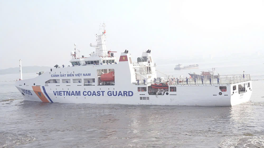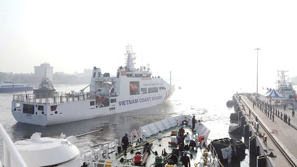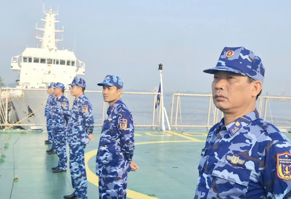 Cán bộ, chiến sĩ Cảnh sát biển Việt Nam thực hiện nghi thức chào cảng.