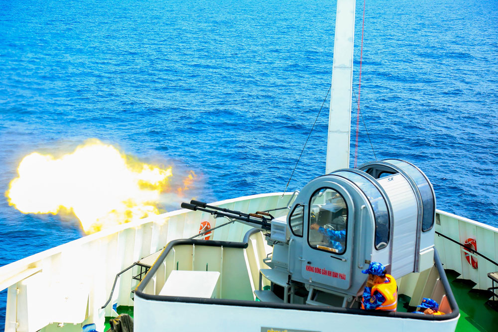 Huấn luyện thực hành bài bắn súng 14,5 mm trên biển.