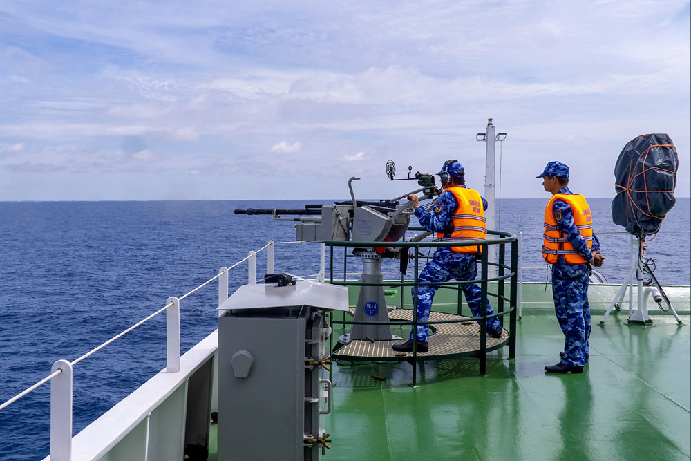 Cán bộ, chiến sĩ tàu CSB 8001 làm nhiệm vụ trực quan sát trên biển.