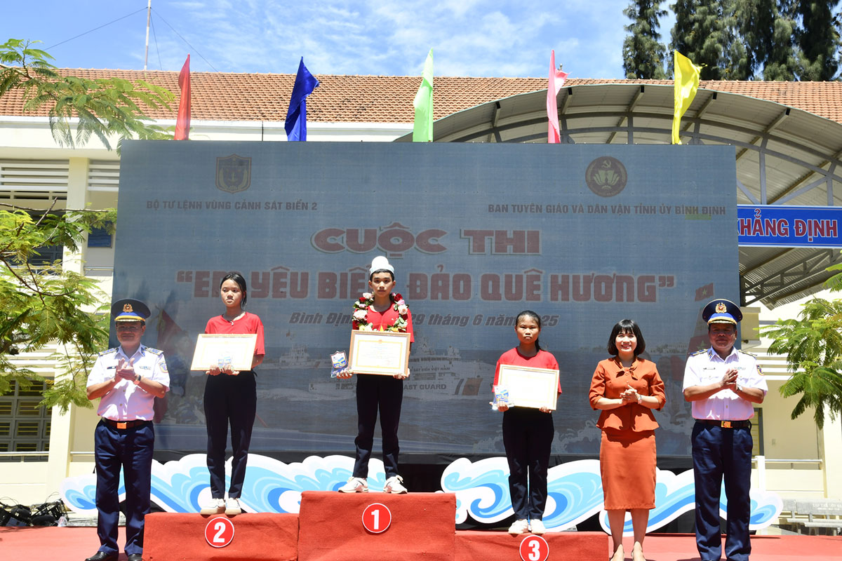 Ban tổ chức Cuộc thi "Em yêu biển, đảo quê hương" trao giải Nhất, Nhì, Ba cho các thí sinh có thành tích xuất sắc.