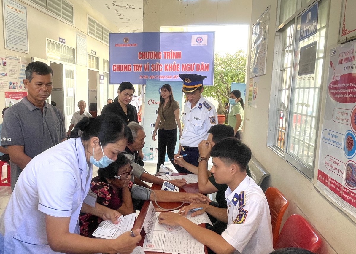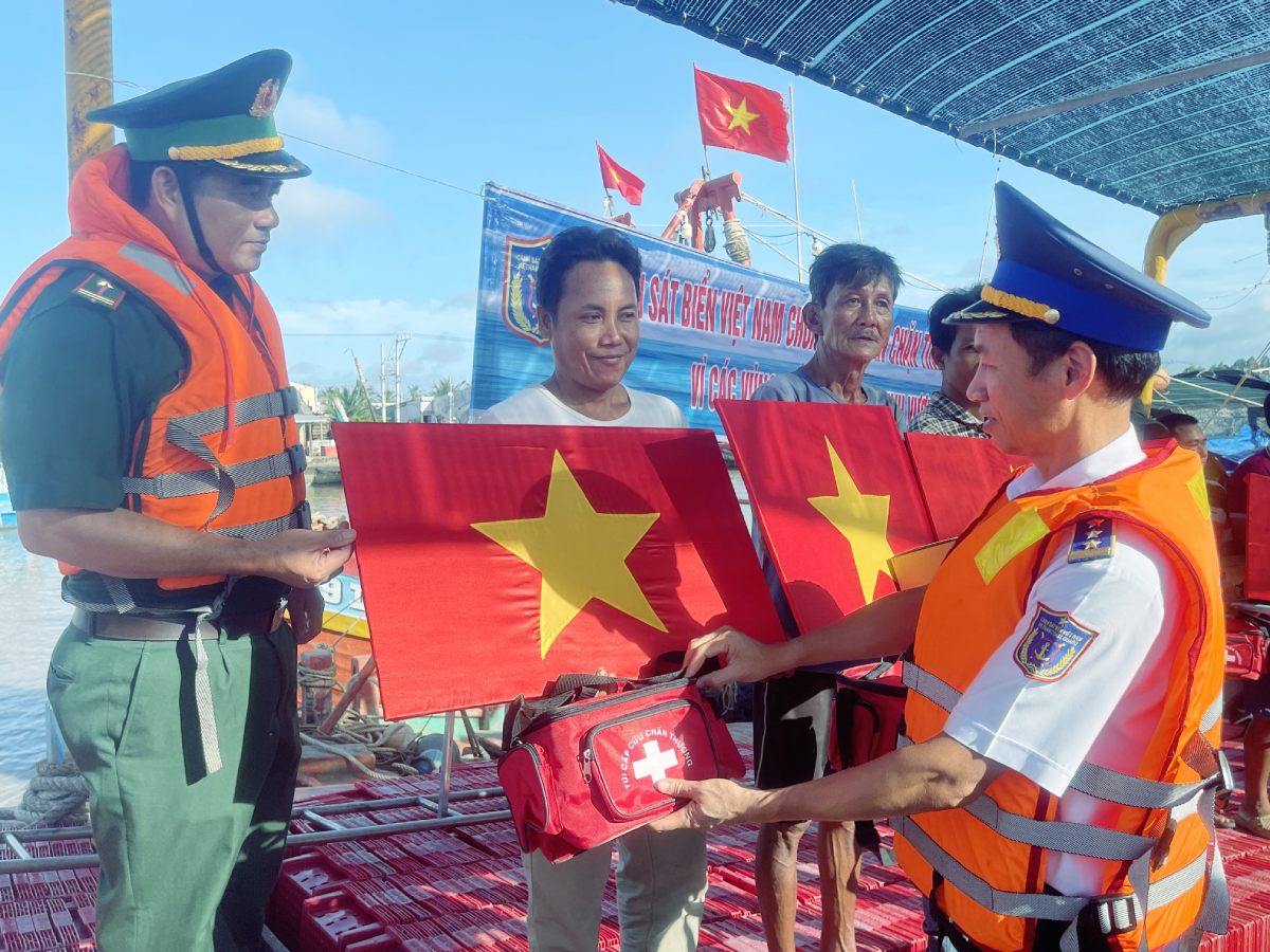 Trong khuôn khổ chương trình, Bộ Tư lệnh Vùng Cảnh sát biển 3 còn phối hợp với Bệnh viện Hùng Vương (Thành phố Hồ Chí Minh) tổ chức khám bệnh, tư vấn sức khỏe, phát thuốc miễn phí cho hơn 300 lượt bà con ngư dân và các gia đình chính sách trên địa bàn thị trấn Định An. Đồng thời, tổ chức trao tặng hàng trăm phần quà thiết thực, gồm 500 lá cờ Tổ quốc, 350 suất quà gồm áo phao, túi thuốc y tế, đèn pin và các nhu yếu phẩm thiết yếu, động viên bà con ngư dân yên tâm vươn khơi bám biển.