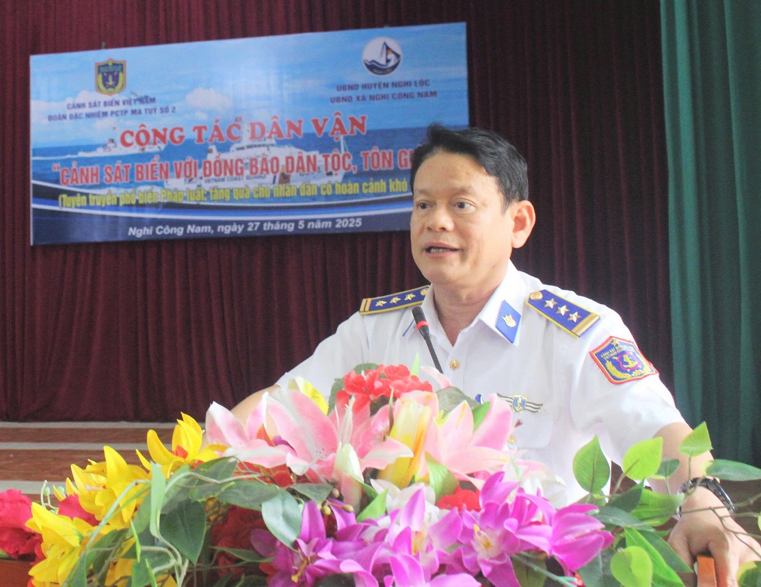 Chiều 27/5, tại xã Nghi Công Nam (huyện Nghi Lộc, tỉnh Nghệ An), Đoàn Đặc nhiệm PCTP ma túy số 2 chủ trì, phối hợp với UBND xã Nghi Công Nam tổ chức Chương trình "Cảnh sát biển với đồng bào dân tộc, tôn giáo" và tuyên truyền kiến thức pháp luật cho nhân dân trên địa bàn.