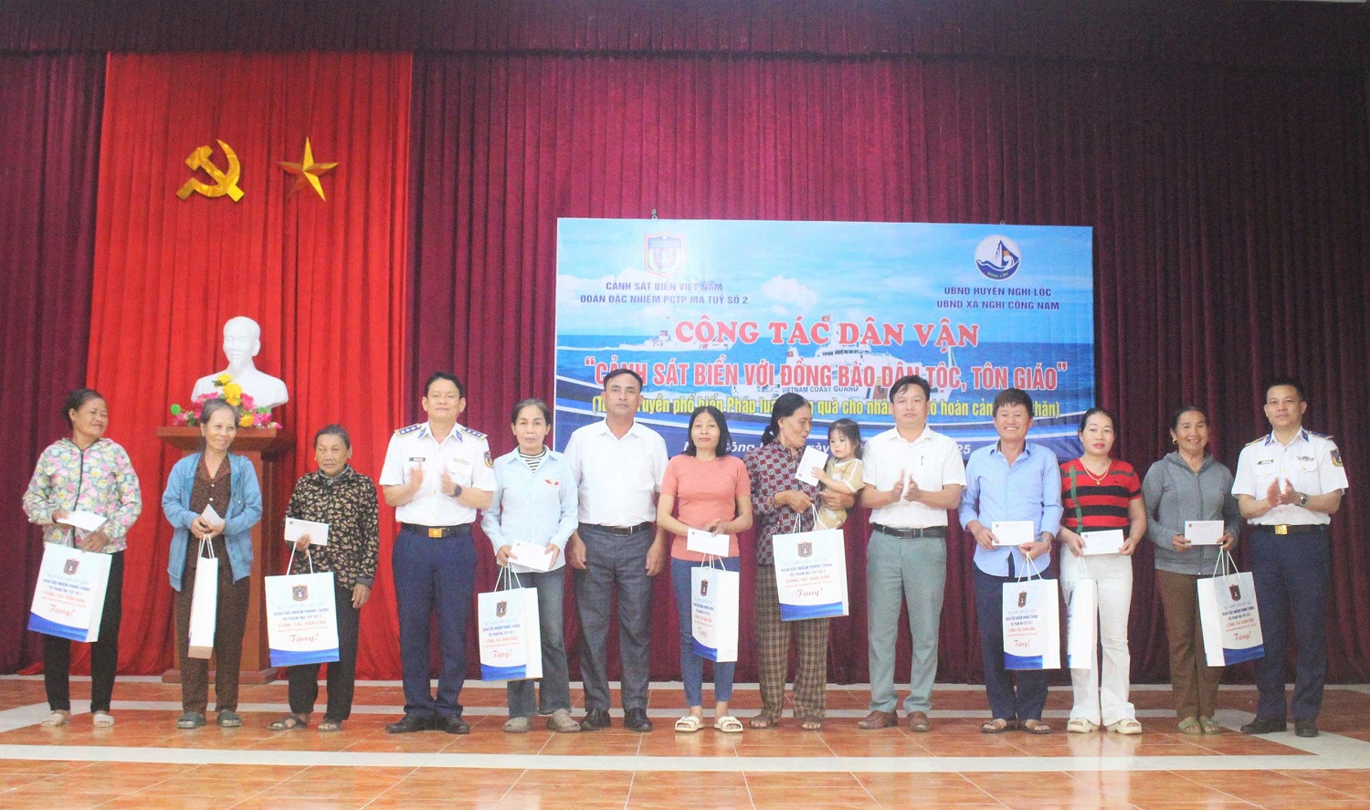 Dịp này, Đoàn Đặc nhiệm PCTP ma túy số 2 đã cấp phát 200 tờ rơi tuyên truyền pháp luật, tặng 300 cờ Tổ quốc cho nhân dân, ngư dân xã Nghi Công Nam; trao 20 suất quà tặng các đối tượng chính sách, gia đình có hoàn cảnh khó khăn trên địa bàn; phối hợp với Bệnh viện đa khoa Cửa Đông cấp phát 200 thẻ khám bệnh miễn phí cho người dân; tặng chính quyền địa phương 100 tài liệu tìm hiểu pháp luật,...