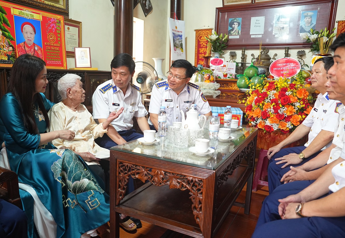 Trong khuôn khổ chương trình, Đoàn công tác đã đến thăm, tặng quà Mẹ Việt Nam anh hùng Trần Thị Bệ, 105 tuổi, tại phường Hải An, thành phố Hải Phòng, có hai con là liệt sĩ đã anh dũng hy sinh trong kháng chiến bảo vệ Tổ quốc. Tại đây, Đoàn công tác đã ân cần thăm hỏi sức khỏe và bày tỏ sự trân trọng, biết ơn trước những mất mát, hy sinh to lớn mà Mẹ và gia đình đã cống hiến vì nền độc lập, tự do của dân tộc.