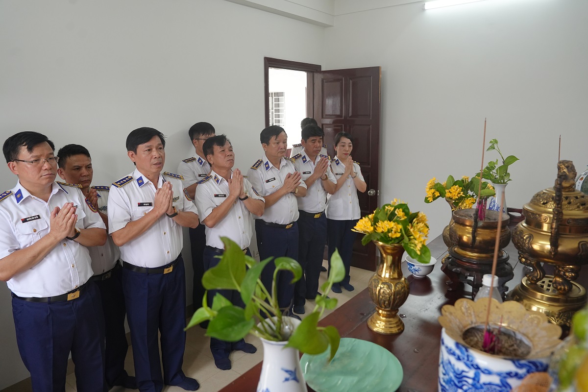 Trong không khí trang nghiêm, thành kính, Đoàn công tác đã kính cẩn nghiêng mình tưởng niệm, gửi gắm tình cảm, lòng biết ơn sâu sắc của cán bộ, chiến sĩ Cảnh sát biển Việt Nam đối với các liệt sĩ - những người đã hy sinh vì sự nghiệp bảo vệ Tổ quốc trong thời bình.
