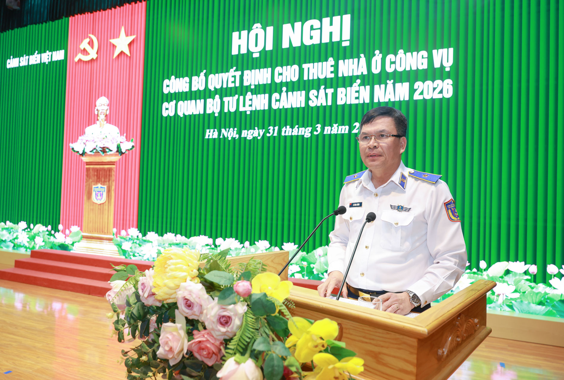 Ngày 31/3, tại Hà Nội, Cảnh sát biển Việt Nam tổ chức Hội nghị công bố quyết định cho thuê nhà ở công vụ cơ quan Bộ Tư lệnh năm 2026. Thiếu tướng Lê Đình Cường - Tư lệnh Cảnh sát biển Việt Nam chủ trì Hội nghị.