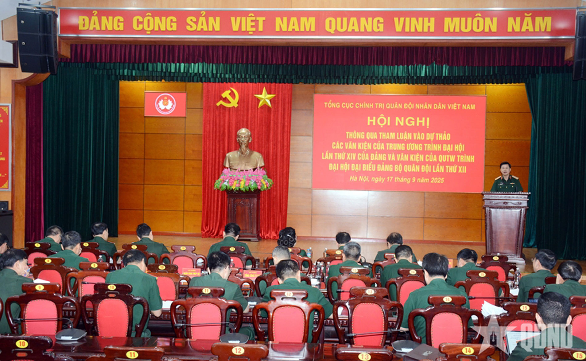 Sáng 17/9, Tổng cục Chính trị Quân đội nhân dân (QĐND) Việt Nam tổ chức Hội nghị thông qua tham luận vào các văn kiện của Quân ủy Trung ương trình Đại hội đại biểu Đảng bộ Quân đội lần thứ XII theo hình thức trực tiếp tại điểm cầu Sở chỉ huy Tổng cục Chính trị kết nối trực tuyến tới 47 điểm cầu toàn quân. Trung tướng Đỗ Xuân Tụng - Phó Chủ nhiệm Tổng cục Chính trị QĐND Việt Nam chủ trì Hội nghị.