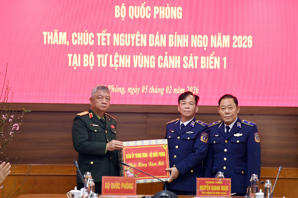 Nhân dịp Tết cổ truyền của dân tộc, thay mặt Quân ủy Trung ương, Bộ Quốc phòng, Thượng tướng Nguyễn Quang Ngọc chúc cán bộ, chiến sĩ Bộ Tư lệnh Vùng Cảnh sát biển 1 năm mới sức khỏe, gia đình hạnh phúc, đoàn kết, hoàn thành xuất sắc mọi nhiệm vụ được giao.