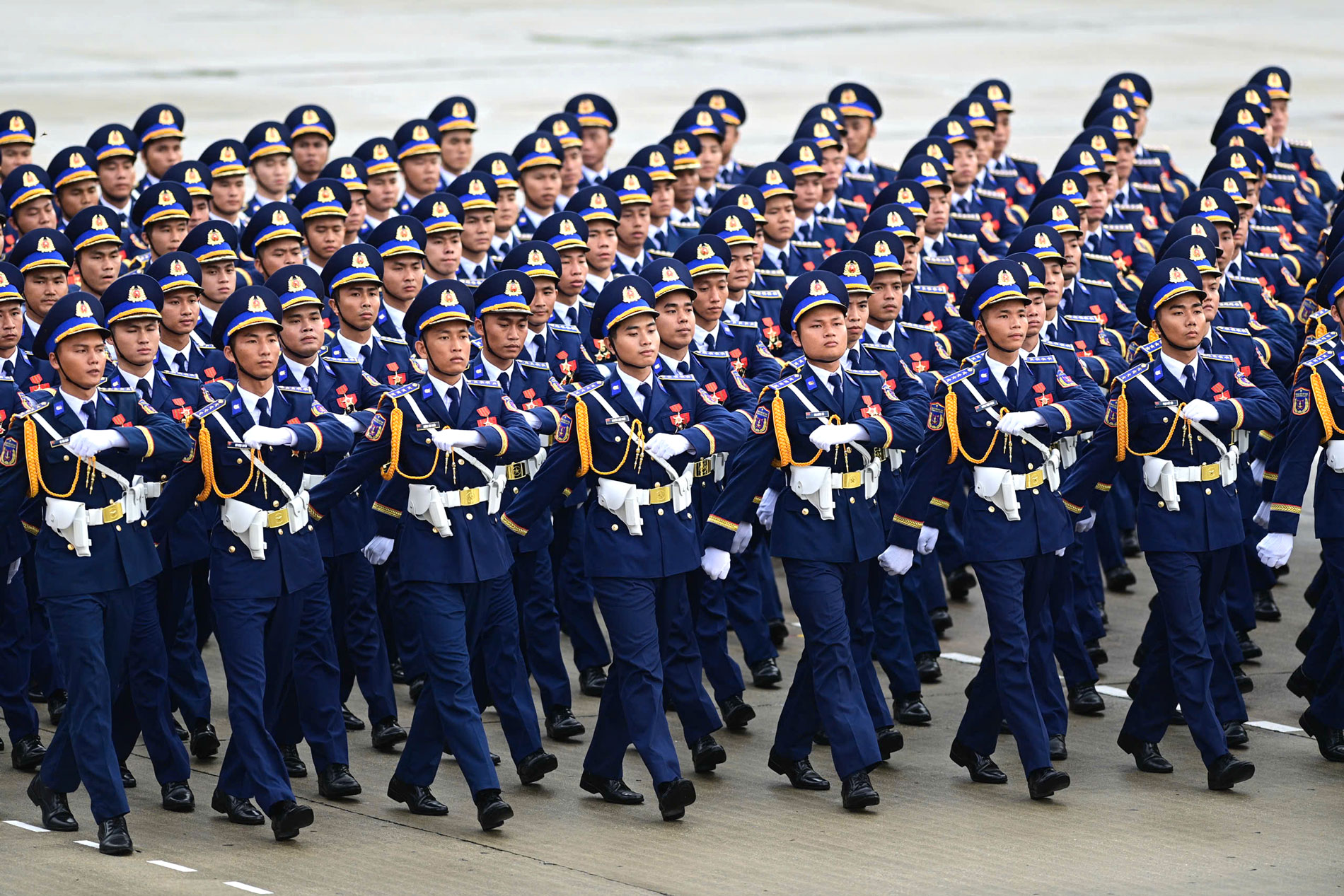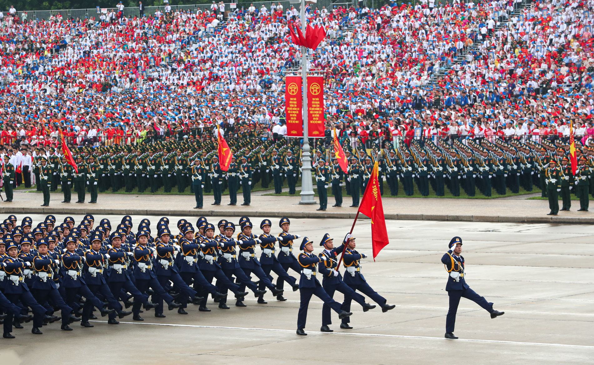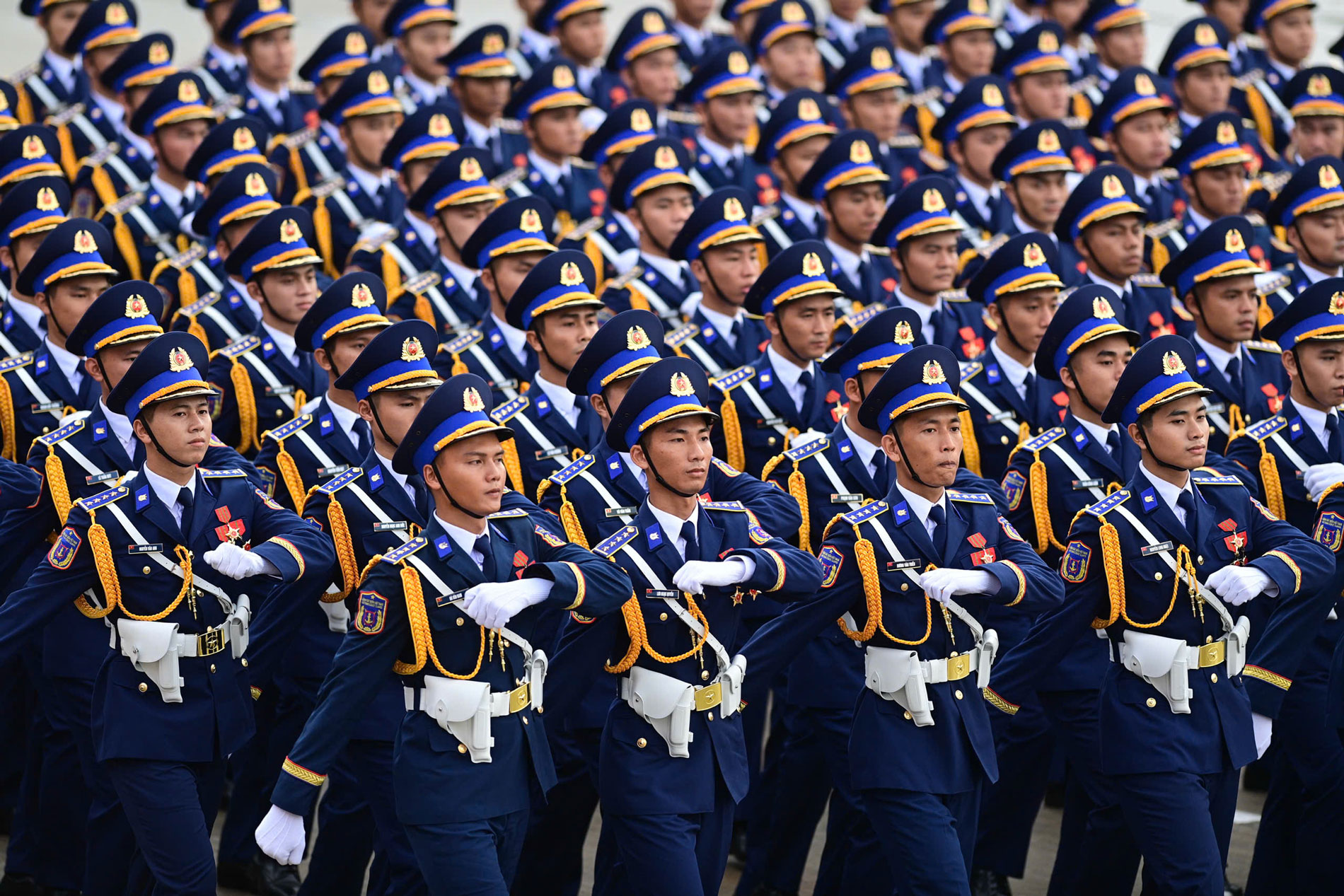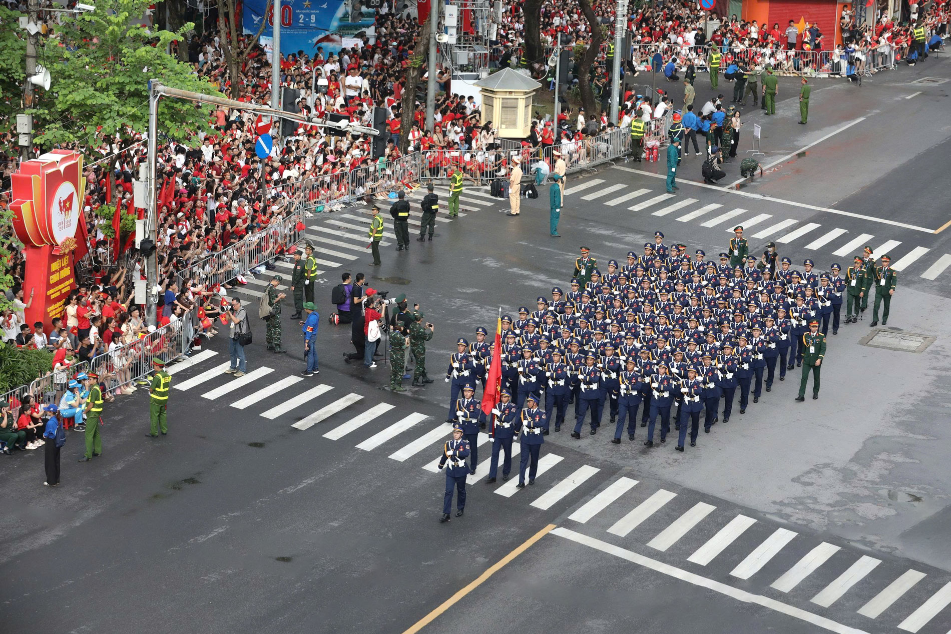 Khối nam sĩ quan Cảnh sát biển Việt Nam diễu hành qua các tuyến phố trong vòng tay của nhân dân.