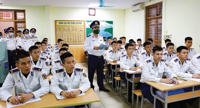 Thủ trưởng Bộ Tư lệnh Cảnh sát biển kiểm tra một buổi lên lớp của cán bộ, học viên Trung tâm Đào tạo và Bồi dưỡng nghiệp vụ Cảnh sát biển. Ảnh: Đức Hạnh