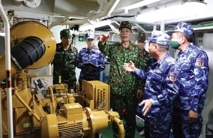 Trung tướng Nguyễn Trọng Bình - Phó Tổng Tham mưu trưởng QĐND Việt Nam kiểm tra công tác kỹ thuật trên tàu CSB 8004. Ảnh: Đức Hạnh