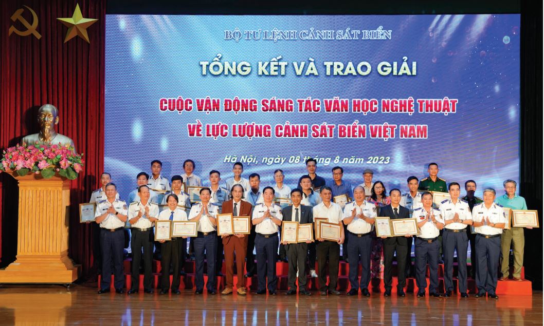 Thủ trưởng Bộ Tư lệnh Cảnh sát biển trao thưởng cho các tác giả đạt giải trong Cuộc vận động Sáng tác văn học nghệ thuật về Lực lượng Cảnh sát biển Việt Nam.