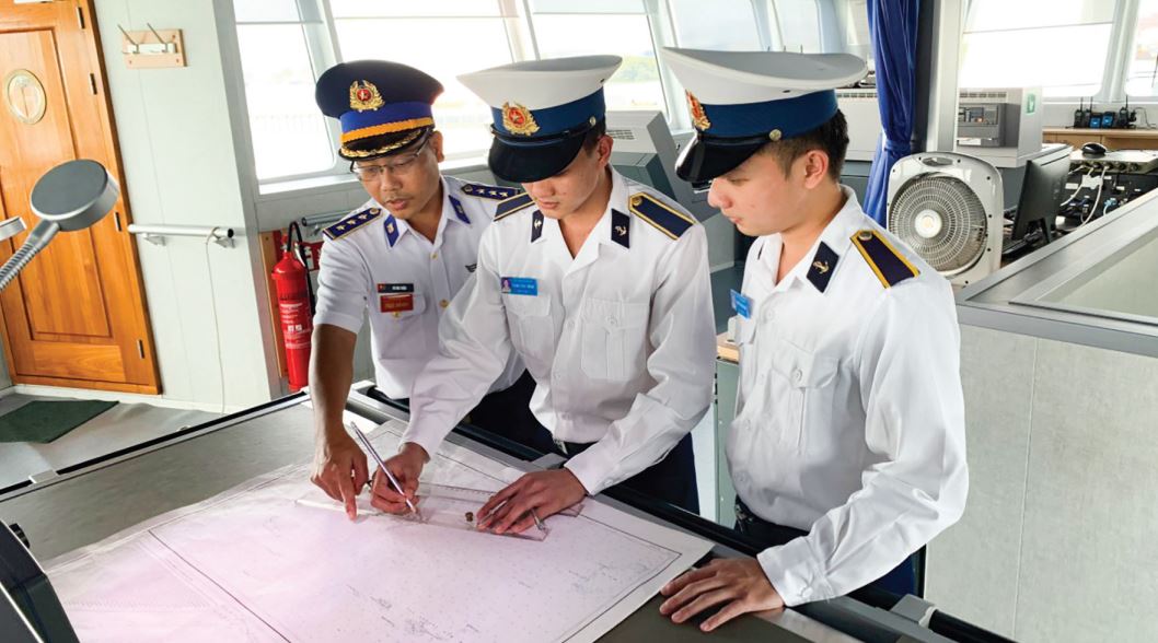 Hướng dẫn học viên chuyên ngành Cảnh sát biển ở Học viện Hải quân tác nghiệp trên hải đồ.