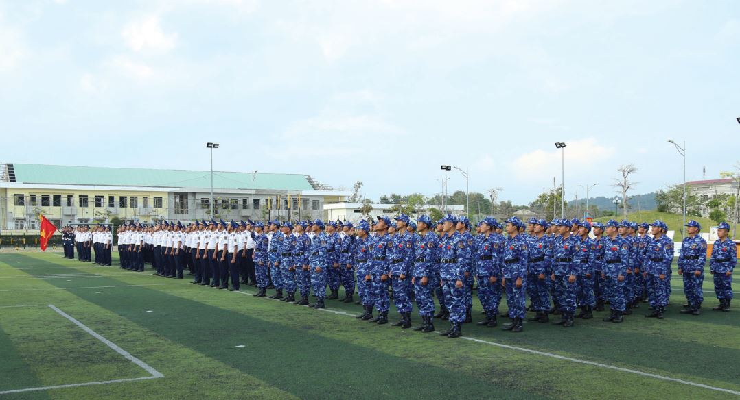 Cán bộ, chiến sĩ Bộ Tư lệnh Vùng Cảnh sát biển 4 đội ngũ chỉnh tề trong Lễ Ra quân huấn luyện.