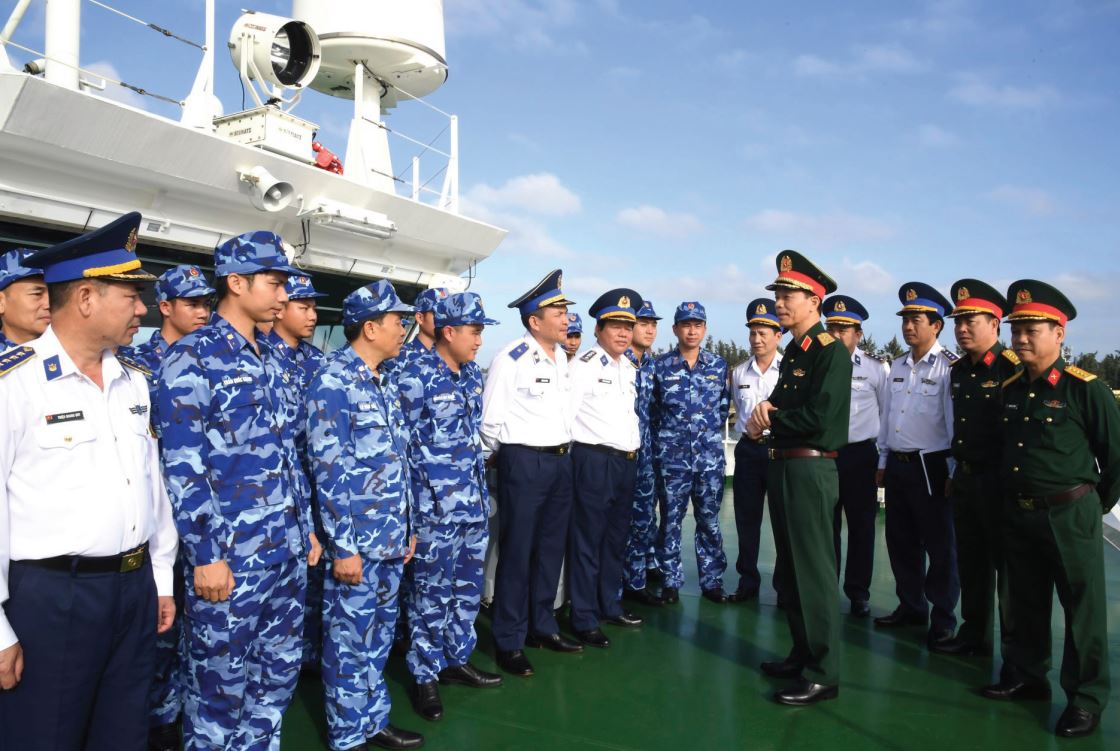 Trung tướng Nguyễn Trọng Bình - Phó Tổng Tham mưu trưởng Quân đội nhân dân Việt Nam kiểm tra tàu CSB 8002/Hải đoàn 21/Bộ Tư lệnh Vùng Cảnh sát biển 2.