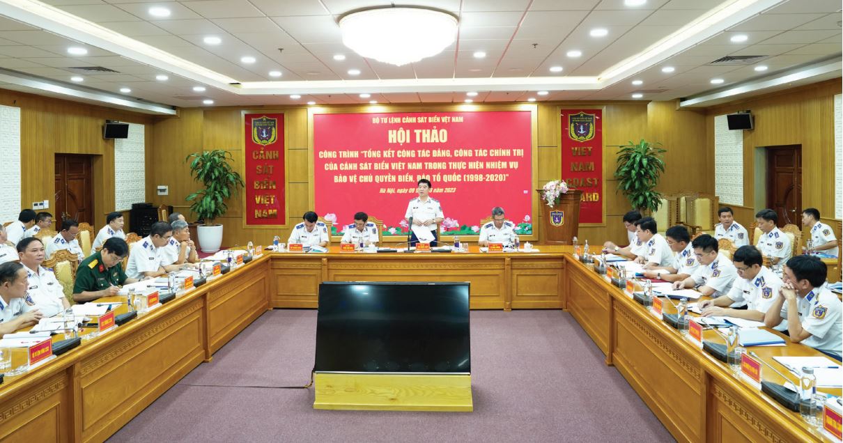 Quang cảnh Hội thảo công trình "Tổng kết công tác đảng, công tác chính trị của Cảnh sát biển Việt Nam trong thực hiện nhiệm vụ bảo vệ chủ quyền biển, đảo Tổ quốc (1998 - 2020).