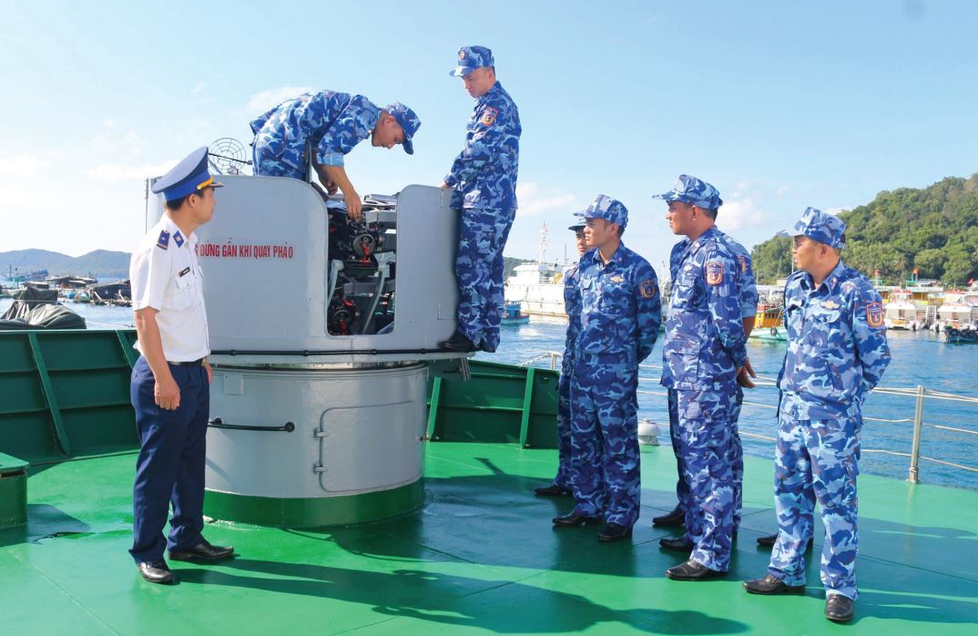Giờ bảo quản, kiểm sửa vũ khí trang bị trên tàu ở Bộ Tư lệnh Vùng Cảnh sát biển 4.