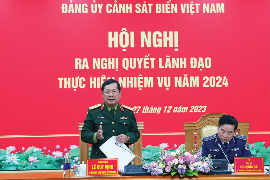 LTS: Ngày 27/12/2023, Đảng ủy, Bộ Tư lệnh Cảnh sát biển vinh dự được đón đồng chí Thượng tướng Lê Huy Vịnh - Ủy viên Trung ương Đảng, Ủy viên Quân ủy Trung ương, Thứ trưởng Bộ Quốc phòng đến dự Hội nghị Đảng ủy Cảnh sát biển Việt Nam ra nghị quyết lãnh đạo thực hiện nhiệm vụ năm 2024. Tại đây, thay mặt Quân ủy Trung ương, Thủ trưởng Bộ Quốc phòng, đồng chí đã có bài phát biểu chỉ đạo quan trọng đối với Đảng ủy, Bộ Tư lệnh Cảnh sát biển. Tạp chí Cảnh sát biển Việt Nam trân trọng trích đăng nội dung phát biểu chỉ đạo của đồng chí Thứ trưởng: