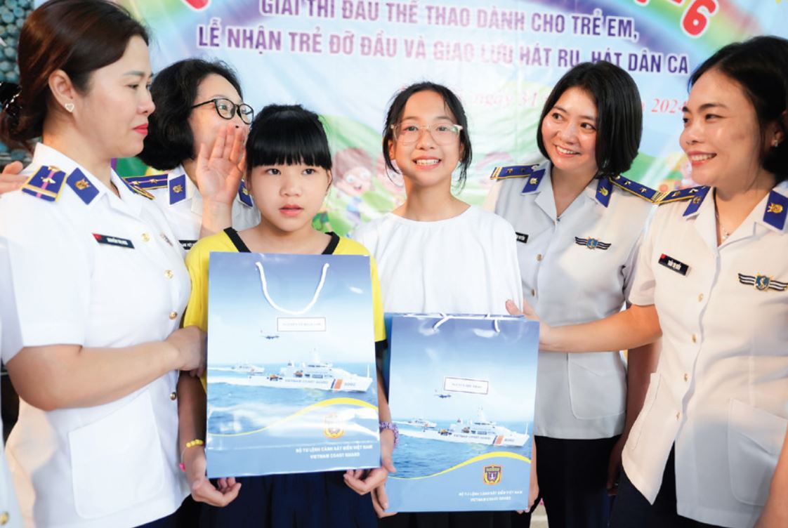 Một trong những dấu ấn của công tác Hội, đó là hoạt động nhân đạo từ thiện, an sinh xã hội được Hội thực hiện thường xuyên, hiệu quả, như phong trào “Quân đội chung tay vì người nghèo - không để ai bị bỏ lại phía sau”, “Phụ nữ Quân đội đồng hành cùng phụ nữ biên cương”, Chương trình “Mẹ đỡ đầu”,... Hội đã tổ chức thăm hỏi, tặng quà cho các gia đình chính sách, phụ nữ có hoàn cảnh khó khăn, học sinh nghèo vượt khó, người già neo đơn, trẻ em vùng biên giới..., với tổng trị giá gần 120 triệu đồng. Chị Trần Thị Hải - Giám đốc Trung tâm Bảo trợ xã hội 3 thành phố Hà Nội chia sẻ: Chương trình “Mẹ đỡ đầu” do Hội Phụ nữ Cục Nghiệp vụ và Pháp luật Cảnh sát biển được triển khai thường xuyên tại Trung tâm, chương trình đã và đang là điểm tựa giúp các em nhỏ yên tâm học tập, phấn đấu rèn luyện trở thành người có ích cho xã hội. Chị Hải kể thêm, nhớ ngày nào, bé Nguyễn Thiên Ban mới lọt lòng, em không biết bố mẹ mình là ai và được đưa về Trung tâm để chăm sóc. Giờ em đã học lớp 8 của trường THCS Lý Nam Đế, quận Nam Từ Liêm với nhiều thành tích cao trong học tập. Cậu bé nhút nhát ngày ấy nay đã là một học sinh tự tin trên bước đường học tập và phát triển bản thân. Đó là nhờ sự ân cần động viên và hỗ trợ của những người “Mẹ đỡ đầu” mang sắc phục Cảnh sát biển. Chương trình đã đem đến cho các con không chỉ có thêm một người mẹ, mà có thêm nhiều người thân, thêm một mái ấm gia đình. Chúng tôi thực sự rất biết ơn những tấm lòng hảo tâm, giàu tình yêu thương của các chị… Hay, ngư dân Nguyễn Thị Sáu - thôn Bãi Ông, xã đảo Tân Hiệp, thành phố Hội An bộc bạch: Chúng tôi vẫn thường xuyên nhận được sự giúp đỡ từ các cán bộ, chiến sĩ Cảnh sát biển khi đi đánh bắt xa bờ. Nay, Hội Phụ nữ Cục Nghiệp vụ và Pháp luật Cảnh sát biển lại đến tận địa phương thăm hỏi, tặng quà, chia sẻ những khó khăn, vất vả cùng bà con ngư dân nơi đây. Chúng tôi cảm thấy rất yên tâm và vững tin vươn khơi, bám biển…