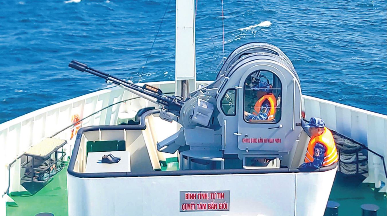 Thực hành bắn pháo 23mm trên Tàu CSB 8001 trong diễn tập chiến thuật vòng tổng hợp và bắn đạn thật trên biển.