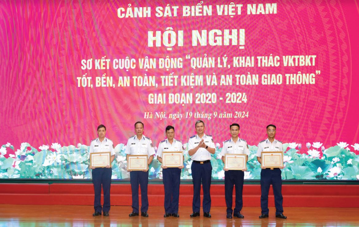 Thiếu tướng Lê Đình Cường - Phó Tư lệnh, Tham mưu trưởng Cảnh sát biển trao thưởng cho các tập thể có thành tích xuất sắc trong thực hiện Cuộc vận động “Quản lý, khai thác vũ khí, trang bị kỹ thuật tốt, bền, an toàn, tiết kiệm và an toàn giao thông” giai đoạn 2020 - 2024.