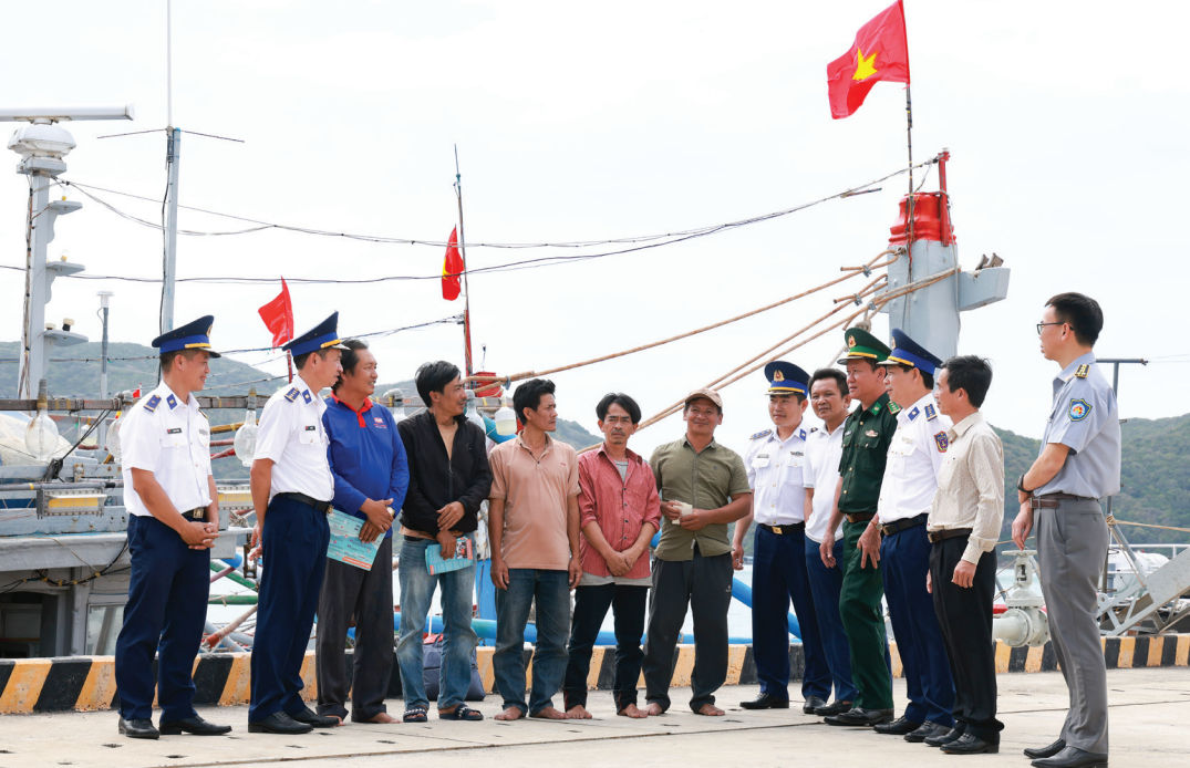 Lực lượng chức năng tuyên truyền cho ngư dân Côn Đảo những quy định về phòng, chống khai thác hải sản bất hợp pháp, không báo cáo và không theo quy định (IUU). Ảnh: ĐỨC HẠNH