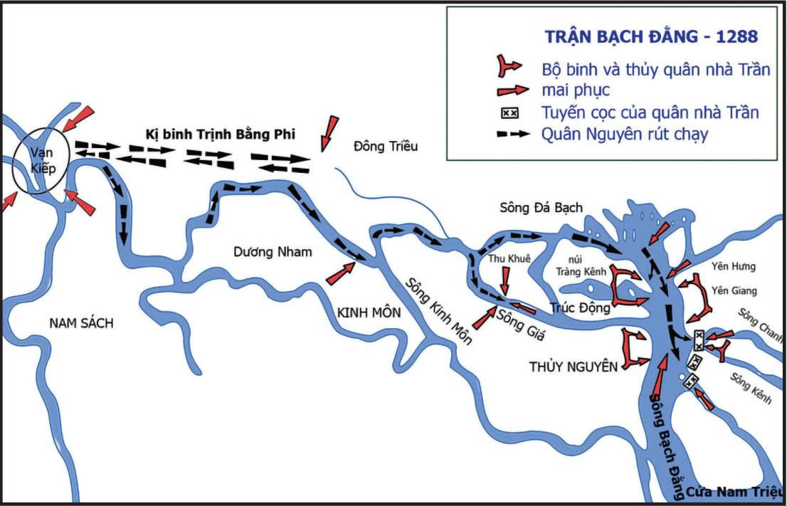 Sơ đồ trận đánh trên sông Bạch Đằng.
