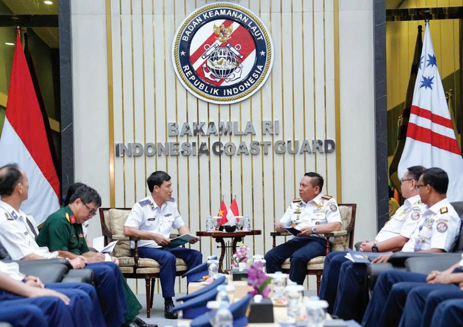 Trong 5 ngày lưu lại tại Jakarta, đoàn công tác Cảnh sát biển Việt Nam đã có một lịch trình hoạt động ý nghĩa và hiệu quả. Điểm nhấn đầu tiên chính là cuộc gặp xã giao giữa đoàn công tác Cảnh sát biển Việt Nam với Phó Đô đốc Irvansyah - Tư lệnh Cảnh sát biển Indonesia và Ngài Pramono Anung Wibowo - Thống đốc thành phố Jakarta. Đến chào xã giao Phó Đô đốc Irvansyah tại trụ sở Bakamla, thừa ủy quyền của Thủ trưởng Cảnh sát biển Việt Nam, Thiếu tướng Ngô Bình Minh - Tư lệnh Vùng Cảnh sát biển 3 đã gửi lời mời Tư lệnh Cảnh sát biển Indonesia tham dự Chương trình giao lưu “Cảnh sát biển Việt Nam và những người bạn” lần thứ 3 (dự kiến được tổ chức vào năm 2026). Lời mời không chỉ dừng lại ở ý nghĩa ngoại giao trong quan hệ song phương, mà còn là sự khẳng định mạnh mẽ quyết tâm và thiện chí của Cảnh sát biển Việt Nam trong việc thúc đẩy hợp tác đa phương ở khu vực. Qua đó, thể hiện rõ mong muốn tăng cường phối hợp trong thực thi pháp luật trên biển, đồng thời chung tay bảo đảm an ninh, an toàn hàng hải, vì môi trường hòa bình, ổn định và phát triển bền vững trên các vùng biển khu vực”.
