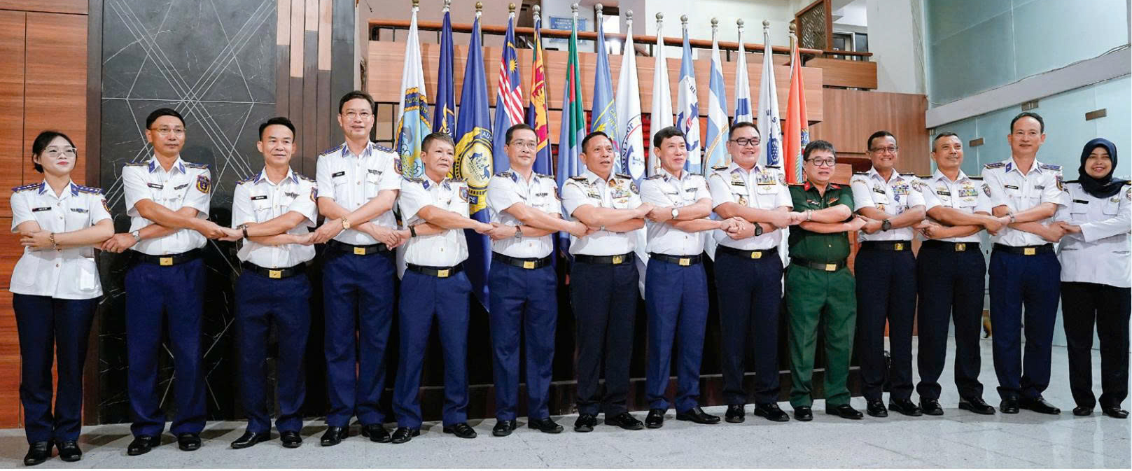 Đoàn công tác Cảnh sát biển Việt Nam chụp ảnh lưu niệm cùng lãnh đạo Cảnh sát biển Indonesia tại cảng thành phố Jakarta. đến “đất nước vạn đảo”.