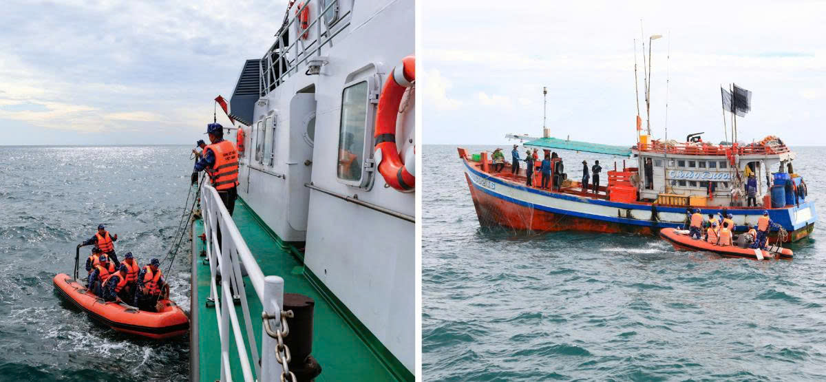 Để nâng cao hiệu quả hoạt động chống khai thác IUU, Cảnh sát biển Việt Nam đã đẩy mạnh hợp tác quốc tế, đối ngoại quốc phòng, phối hợp chặt chẽ với lực lượng thực thi pháp luật trên biển các nước có vùng biển tiếp giáp, liền kề trao đổi về hoạt động tàu cá, thông báo cho Bạn về nỗ lực của của Việt Nam (trong đó có Cảnh sát biển Việt Nam) trong ngăn chặn, xử lý nghiêm các tàu cá Việt Nam vi phạm vùng biển nước ngoài khai thác hải sản trái phép, tiến tới gỡ "Thẻ vàng" của EC trong năm 2025. Phối hợp với Cảnh sát biển Trung Quốc tiếp nhận 22 ngư dân của 3 tàu cá (QNg 98336TS/8 ngư dân, QNg 98702TS/2 ngư dân, bị Cảnh sát biển Trung Quốc bắt giữ ngày 24/6/2025 và tàu BV 92699TS/12 ngư dân bị Cảnh sát biển Trung Quốc bắt giữ ngày 29/5/2025) cho Cảnh sát biển Việt Nam theo đúng quy định pháp luật Việt Nam và pháp luật quốc tế, sau đó phối hợp bàn giao cho các địa phương theo đúng quy định của pháp luật.