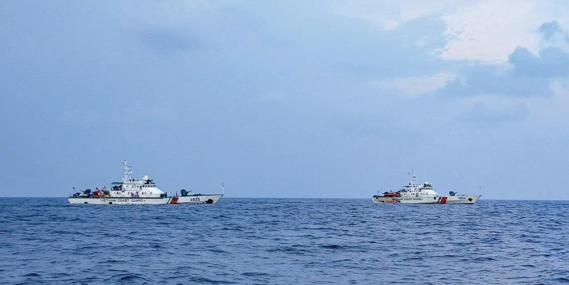 Biên đội tàu CSB 4034 và tàu CSB 4035 thực hiện nhiệm vụ chống khai thác IUU trên khu vực biển giáp ranh Việt Nam - Thái Lan - Malaysia - Indonesia. Ảnh: Đức Hạnh