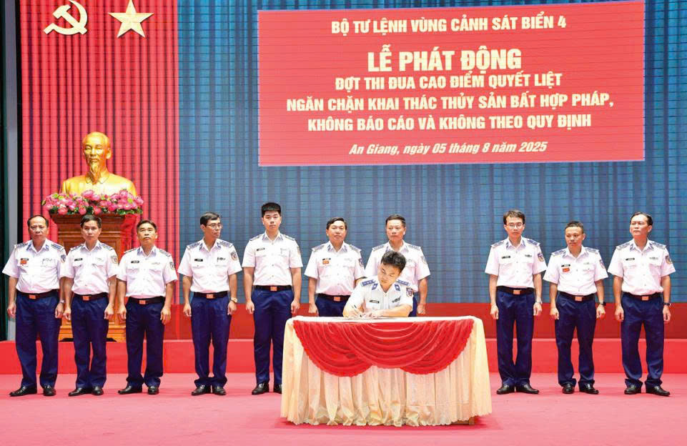 Bộ Tư lệnh Vùng Cảnh sát biển 4 phát động Đợt thi đua cao điểm quyết liệt chống khai thác IUU. Ảnh: Đức Thái