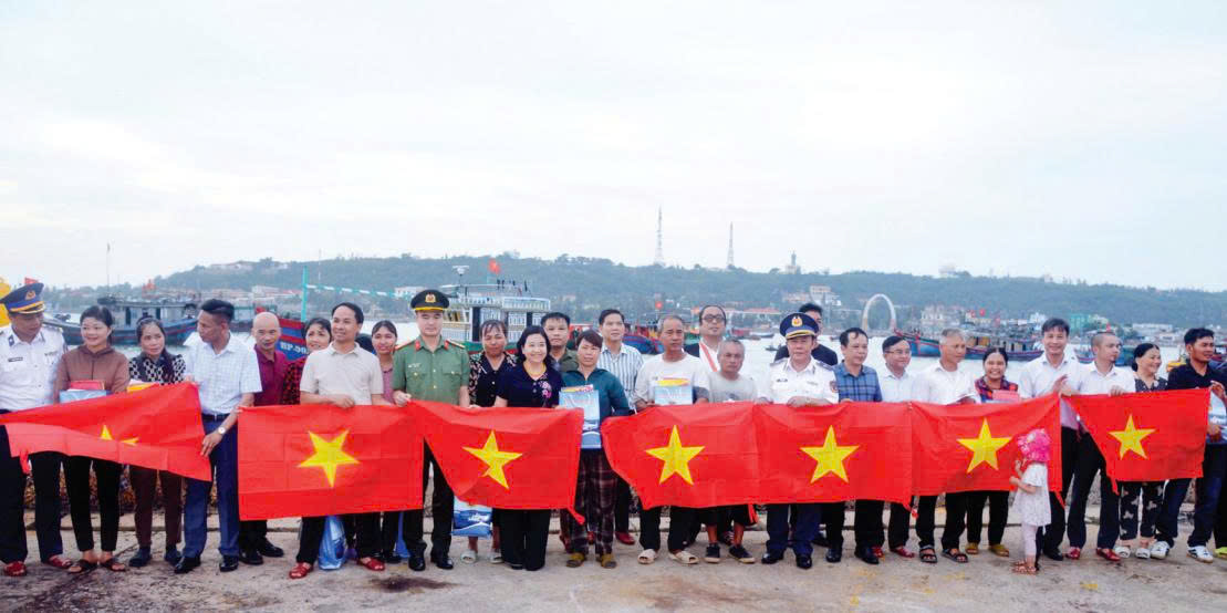 Bộ Tư lệnh Vùng Cảnh sát biển 1 cùng đại biểu Ban Tuyên giáo và Dân vận các địa phương và các cơ quan, doanh nghiệp tặng cờ Tổ quốc cho ngư dân tại huyện đảo Bạch Long Vĩ trong chuyến khảo sát, nắm tình hình các vùng biển, đảo ven bờ thuộc Vịnh Bắc Bộ.
