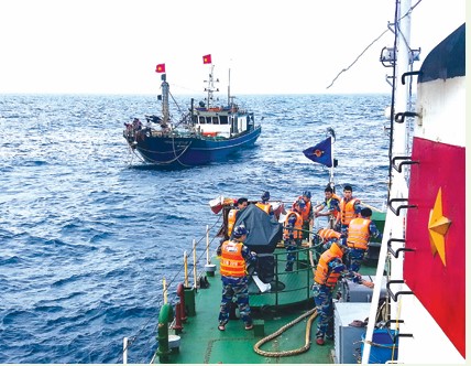 Cán bộ, chiến sĩ tàu CSB 2016/BTL Vùng CSB 2 thực hiện nhiệm vụ cứu nạn trên biển.