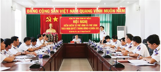 Tập thể Đảng ủy Vùng thực hiện nghiêm nguyên tắc tập trung dân chủ, tập thể lãnh đạo đi đôi với phân công cá nhân phụ trách; phát huy vai trò trách nhiệm của cán bộ, đảng viên, nhất là đội ngũ cán bộ chủ trì các cấp; thẳng thắn đấu tranh bảo vệ những quan điểm, đường lối của Đảng, chính sách và pháp luật của Nhà nước, đấu tranh không khoan nhượng với quan điểm lệch lạc sai trái, trung bình chủ nghĩa, nói không đi đôi với làm, nói nhiều làm ít. Tổ chức kiểm điểm tự phê bình, phê bình bổ sung theo Nghị quyết Trung ương 4 (Khóa XII) của Đảng trong toàn bộ Vùng nghiêm túc, chất lượng, tập trung đi sâu vào 27 biểu hiện suy thoái về tư tưởng chính trị.