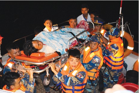 Cán bộ, chiến sĩ BTL Vùng Cảnh sát biển 4 cấp cứu kịp thời ngư dân bị nạn.