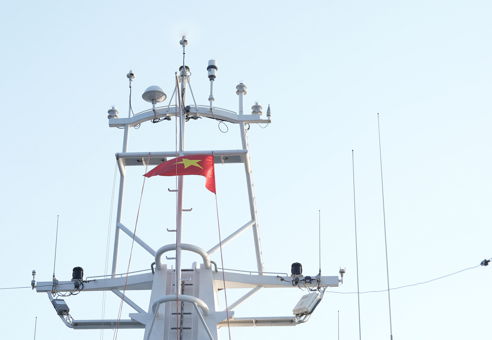 Ngay từ sáng sớm, đứng trên boong tàu, đưa tầm mắt ra xa có thể thấy mặt trời dần hé lên trên mặt biển xanh thẳm, tạo nên khung cảnh thật hùng vĩ. Những tia nắng đầu tiên chiếu rọi lá cờ đỏ sao vàng trên đỉnh cột cờ, như lời nhắc nhở mỗi người lính Cảnh sát biển về nhiệm vụ vẻ vang, cao cả mà họ đang thực hiện.