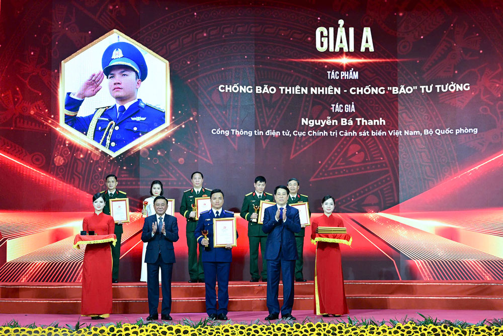 Mới đây, ngày 22/10, tại Lễ vinh danh và trao giải Cuộc thi chính luận về Bảo vệ nền tảng tư tưởng của Đảng lần thứ Năm, năm 2025 - do Ban Chỉ đạo 35 Trung ương chỉ đạo, Học viện Chính trị quốc gia Hồ Chí Minh chủ trì, phối hợp Ban Tuyên giáo và Dân vận Trung ương, Hội đồng Lý luận Trung ương, Tạp chí Cộng sản, Báo Nhân dân, Đài Truyền hình Việt Nam, Hội Nhà báo Việt Nam tổ chức - Nguyễn Bá Thanh đã xuất sắc đạt giải A cấp Trung ương với tác phẩm báo điện tử (3 kỳ) “Chống bão thiên nhiên - Chống “bão tư tưởng”. Tại buổi lễ, đồng chí đã vinh dự được Chủ tịch nước Lương Cường và Thường trực Ban Bí thư Trần Cẩm Tú trực tiếp trao giải, đánh dấu son ý nghĩa trong hành trình cống hiến của người làm báo - người chiến sĩ Cảnh sát biển.