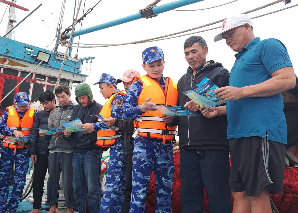 Tuyên truyền pháp luật cho ngư dân trên biển.