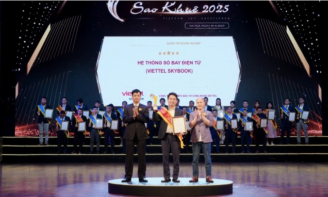Sổ tay bay điện tử Viettel Skybook đạt 5 sao, dịch vụ phát triển phần mềm được công nhận là dịch vụ số xuất sắc tại lễ trao giải Sao Khuê, ngày 19/4.
